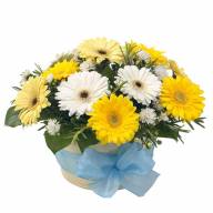 Красивая корзина из больших гербер будет непревзойденным подарком для любого человека. Цветочная композиция станет отличным знаком внимания для челнов семьи, подарком на День Рождения или в честь повышения коллеге. Белый цвет символизирует нежность и чистоту намерений, а желтый выражает радость, улыбку и оптимизм. Сочетание значений хорошо подойдет для красивого жеста в адрес симпатичной девушки на свидании, а стильное оформление не оставит равнодушным даже эстета.